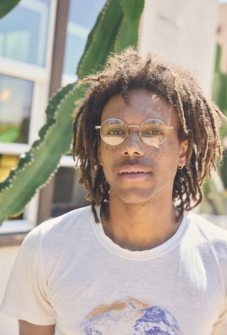 With innovative design touches and an ultra-light Beta-Titaniun construction, Kozlo is the perfect balance of style and substance. The small round eye shape is counterbalanced by extended end pieces, which add a modern touch and give the frame a little extra width. The frame also features nuanced details like textured rims, acetate temple tips, and new custom metal hardware.Â