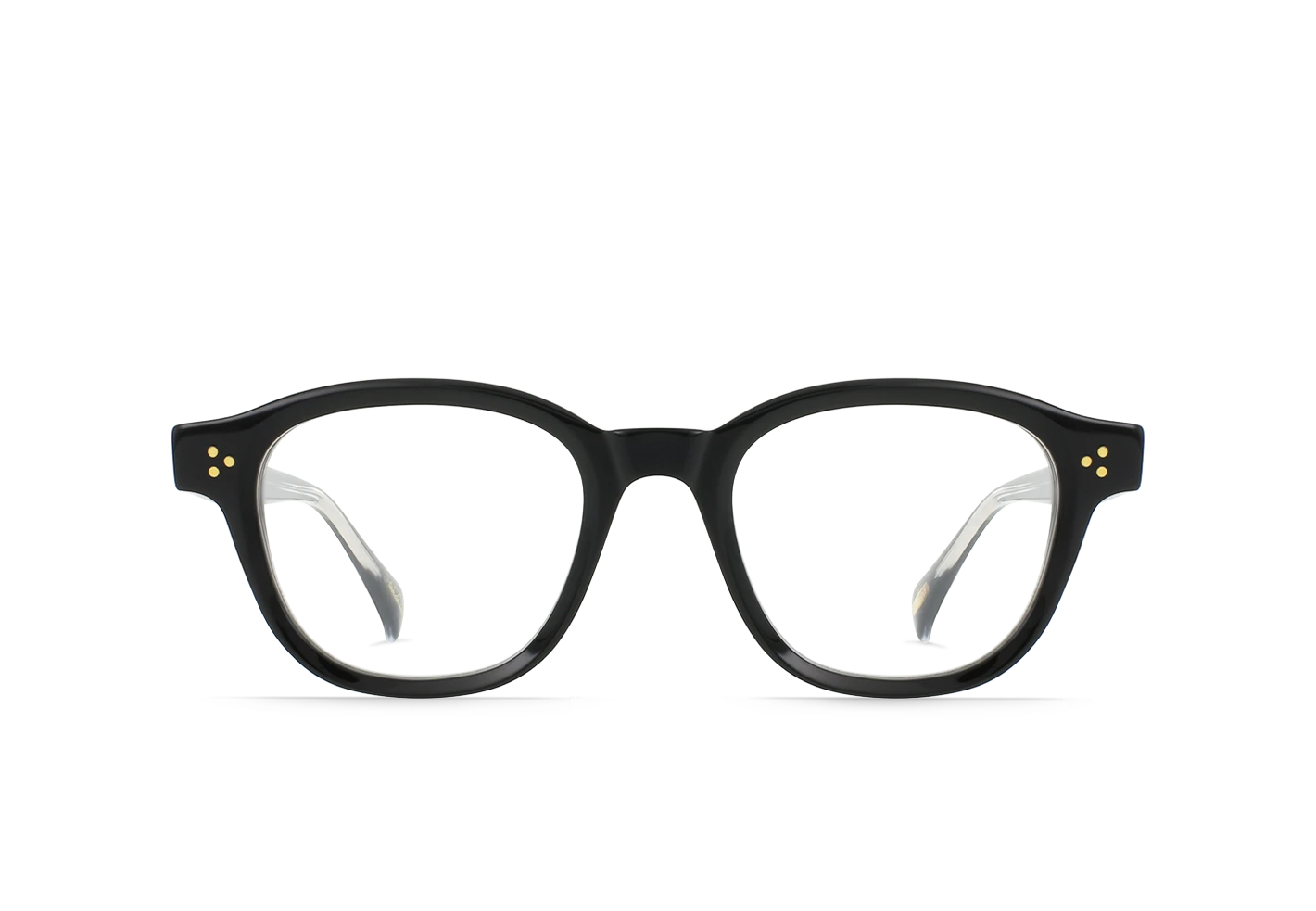 Locklin is a sharp optical standout thanks to the deep bevel around the lens, transparent materials, and intricate temple details. It offers a sturdy, luxurious feel – both in the hand and on the face – and the triple rivet hardware adds a refined edge. These frames are a striking twist on our Modern Classic designs.